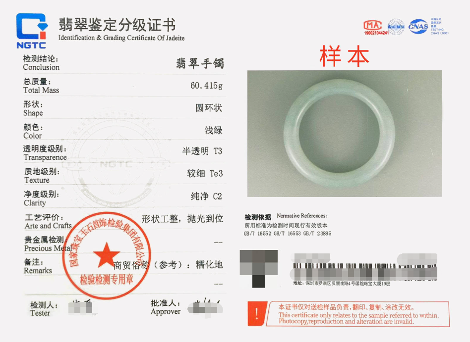 证明材料示例 | ①主张商品为“假冒材质成分”时:国家珠宝玉石质量监督检验中心(简称NGTC)出具的材质鉴定证书 |