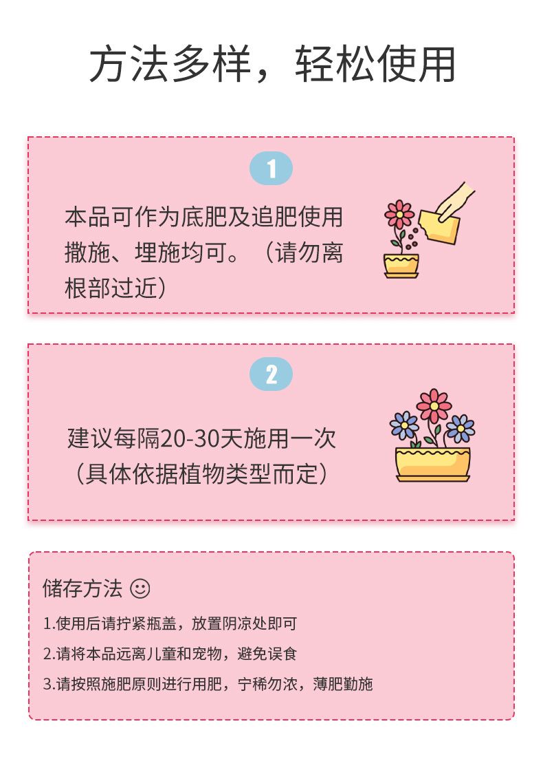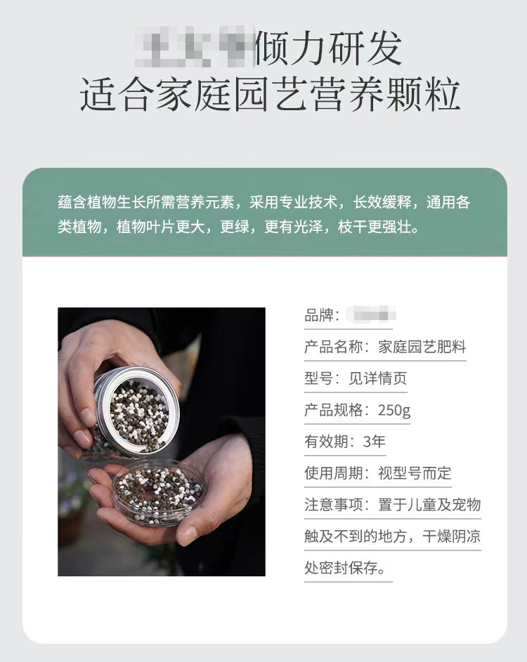 c. 肥料类商品需描述清楚商品基本信息:产品名称、成分含量、产品规格、产品剂型、登记证号、生产企业名称、许可证号、执行标准、保质期、原产地、储存方式、产品使用方法等,禁止出现与所售商品无关或不一致的商品信息,如不应带有不实、夸大性质的词语及谐音,包括但不限于;高效、特效、全元、多元、高产、双效、多效、增长、促长、高肥力、霸、王、神、灵、宝、圣、活性、活力、强力、激活、抗逆、抗害、高能、多能、全营养、保绿、保花、保果等;