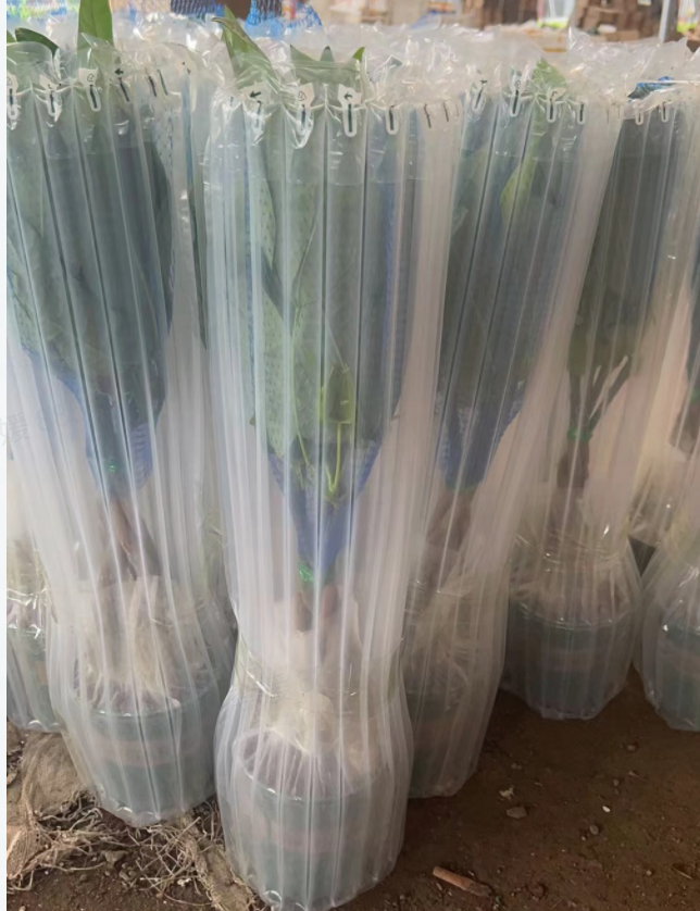 无花盆带土坨 | 1.空气柱袋保护植物。 2.植物外层可增加无纺布、纸类或网兜固定。 3.果树类商品注意果树切口保水。 | 1.用捆绳或者保鲜膜包裹住土坨,防止栽培基质散落污染植物造成植物损伤。 2.用绑带将商品与包装箱固定,防止商品散落损伤。 3.大型植物包装外层应加固保护木架箱。 | |||