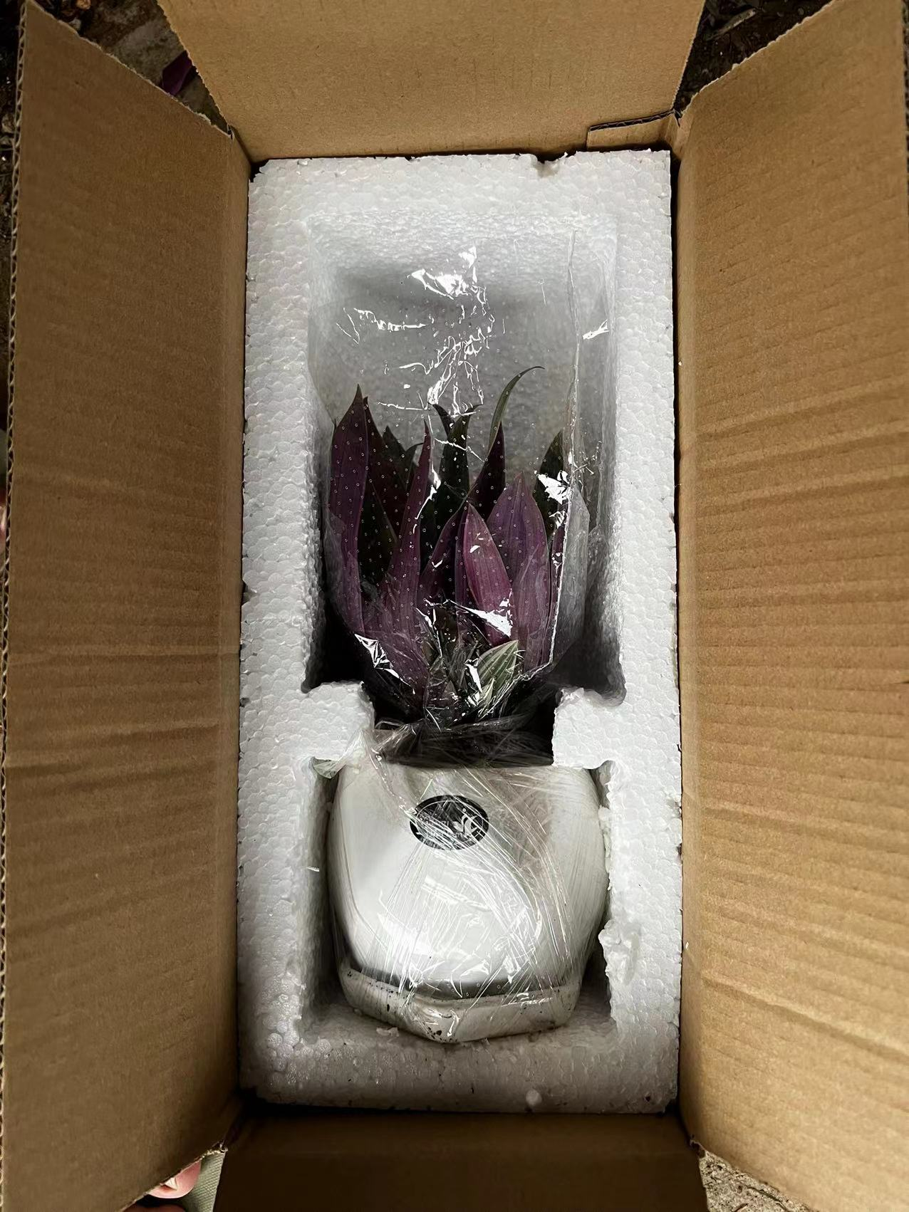 陶瓷花盆 | 五层瓦楞纸箱 | 1.泡沫材料。 2.植物枝叶应用无纺布、纸类或网兜固定以防商品受到损伤。 | 1.保鲜膜包裹花盆盆口及花盆底部出水口,以包裹住栽培基质为宜,防止基质洒出污染商品造成商品损伤。 2.以泡沫固定花盆及植物。 3.大型植物包装外层应加固保护木架箱。 | 根据用户实际需求选择顺丰、丰网、中通、韵达、圆通、京东快递。 | |