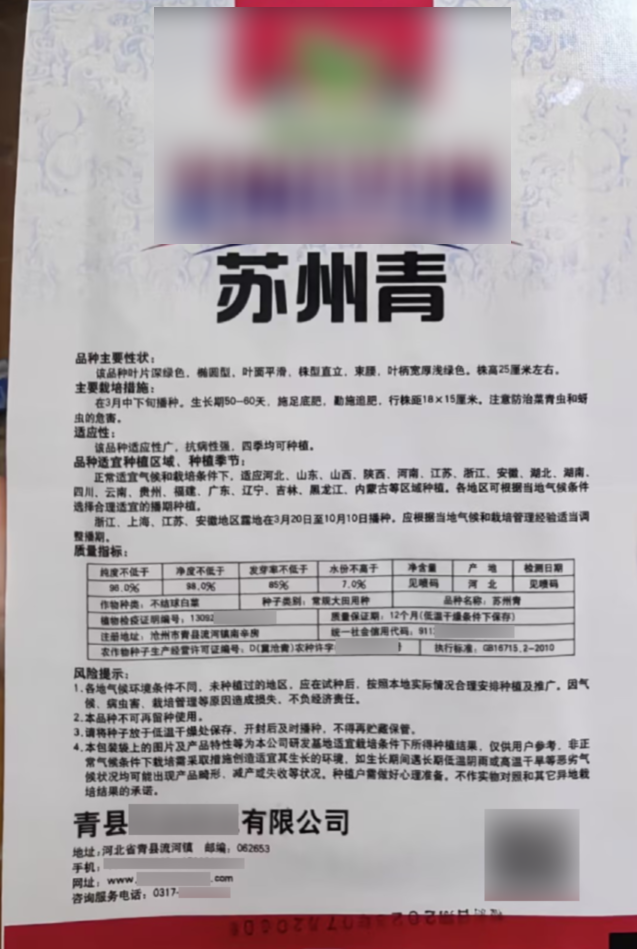 1)农作物商品种子标签应标注作物种类与种子类别、品种名称、生产商或进口商名称及地址、质量指标、产地、 生产年月、种子经营许可证编号和检疫证明编号;