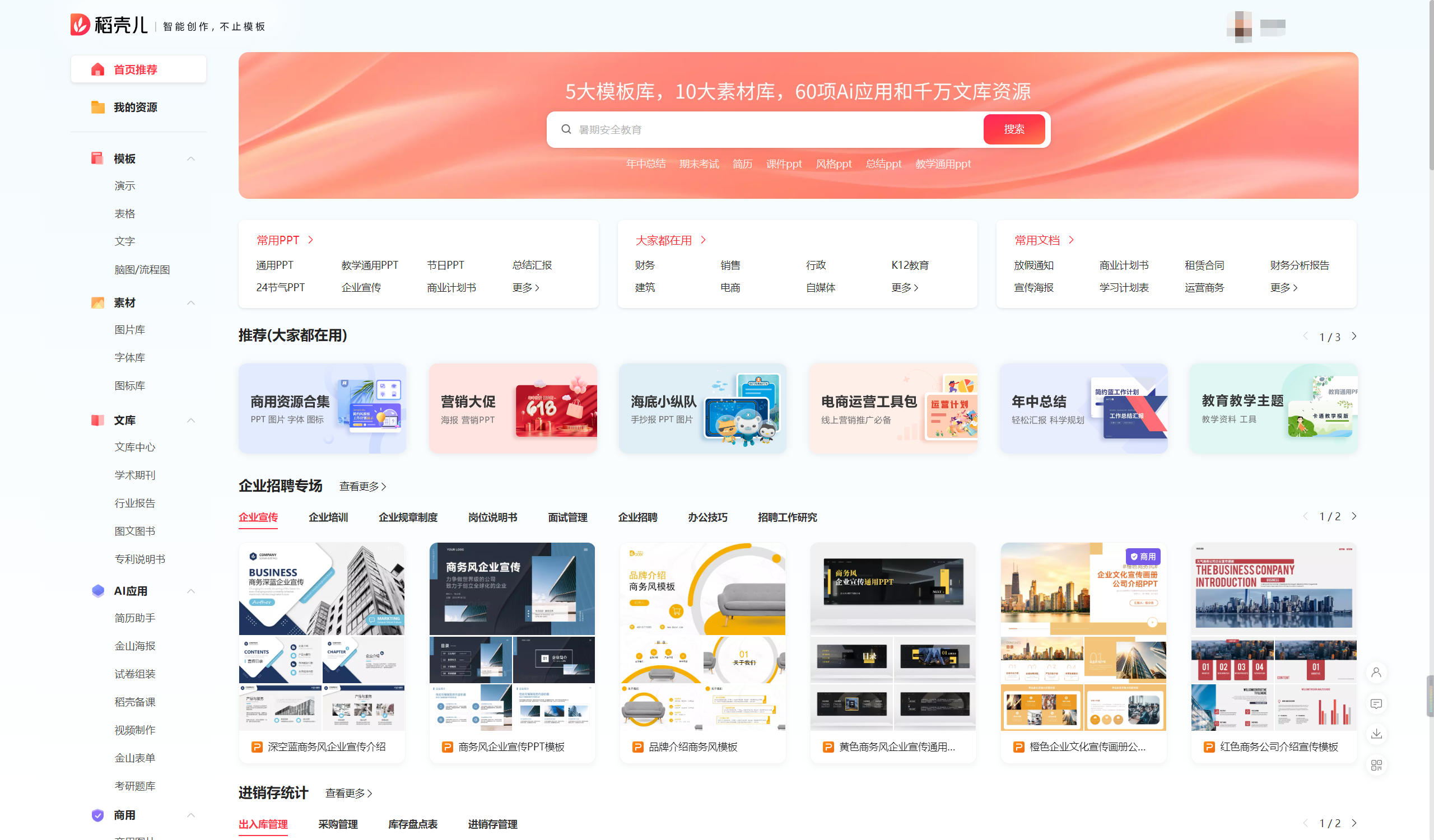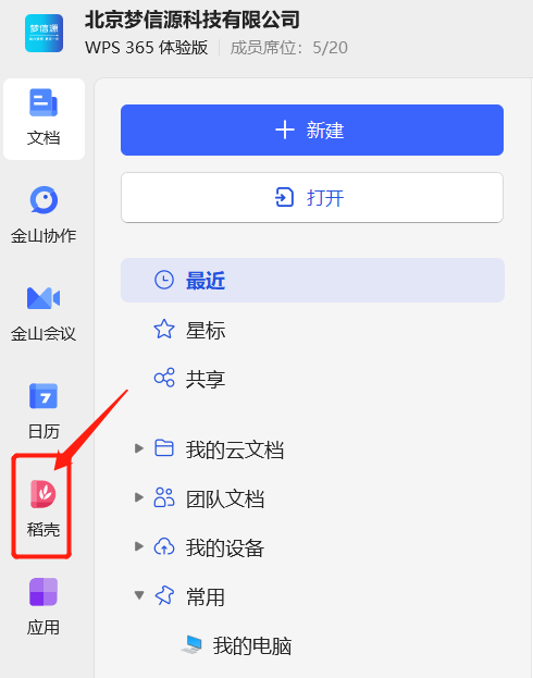 稻壳上有很多的素材,作为尊贵的超级会员,要使用它的话,只需要在WPS首页的左侧栏点击 稻壳 标志就能进入了